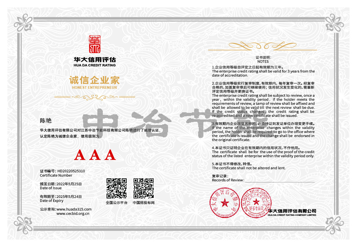 公司ISO9001:2000國(guó)際質(zhì)量體系認(rèn)證年檢審核中,連年多次被中國(guó)產(chǎn)品信用評(píng)價(jià)中心認(rèn)定為:AAA級(jí)信用企業(yè);AAA級(jí)質(zhì)量服務(wù)誠(chéng)信單位;AAA級(jí)重合同守信用企業(yè);AAA級(jí)重質(zhì)量守信用單位;AAA級(jí)誠(chéng)信經(jīng)營(yíng)示范單位;公司“以質(zhì)量求生存,以科技求發(fā)展”為理念,產(chǎn)品質(zhì)量穩(wěn)定,性能先進(jìn),國(guó)內(nèi)領(lǐng)先。深受新老客戶的廣泛好評(píng),產(chǎn)品廣泛出口東南亞地區(qū)。